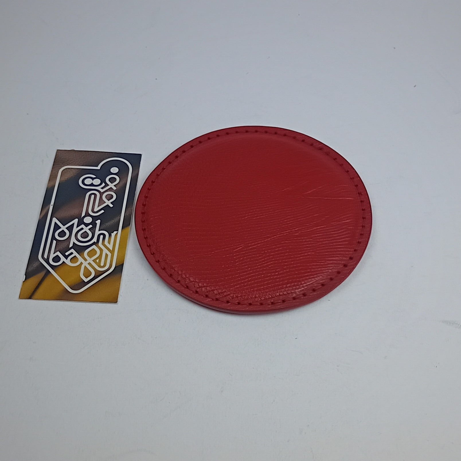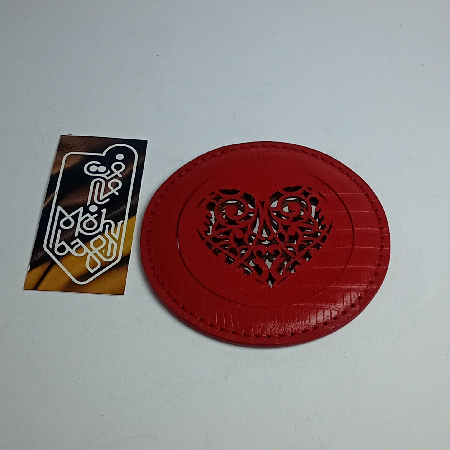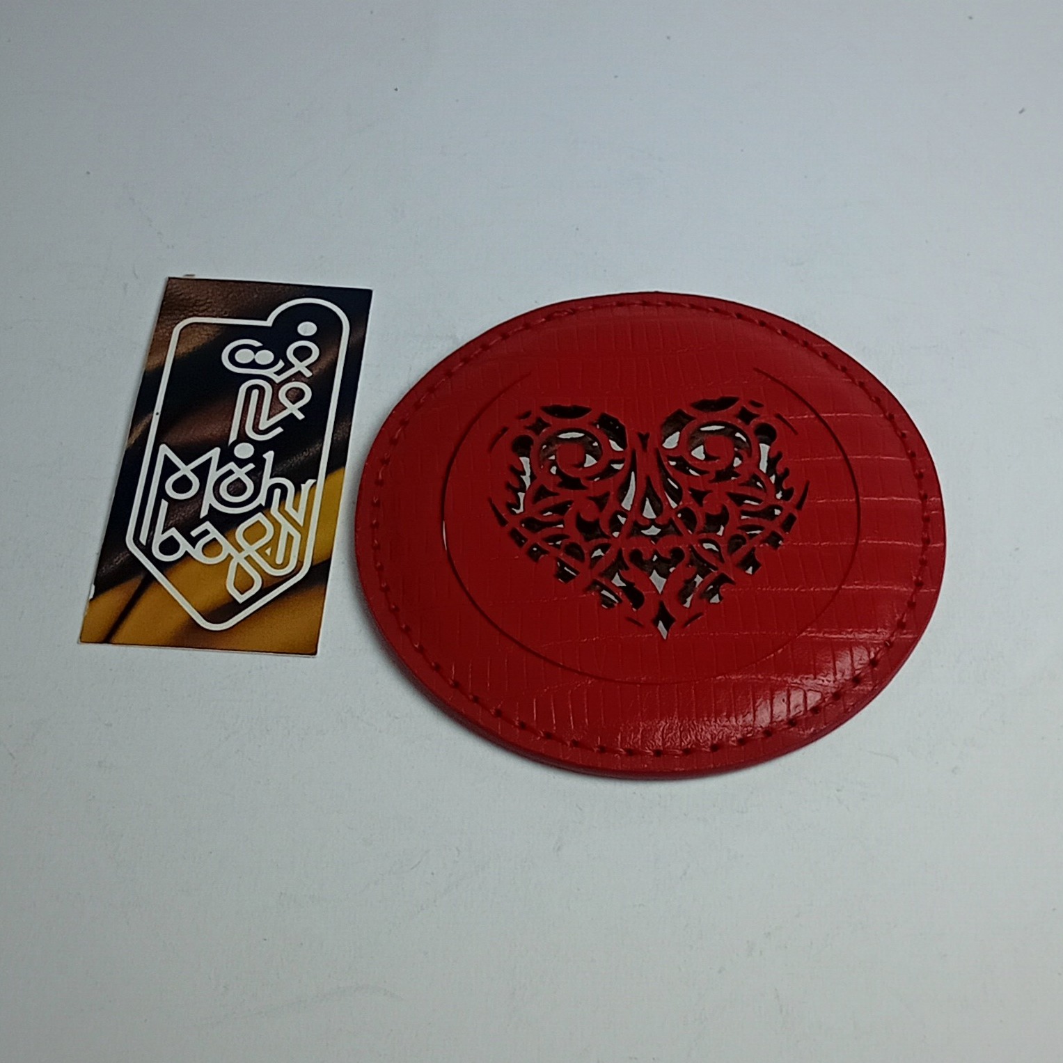 آینه چرمی طرح قلبی ، تهیه شده از چرم طبیعی گاوی طرح لزارد ، دست دوز ، دارای رنگ لبه با مواد درجه یک