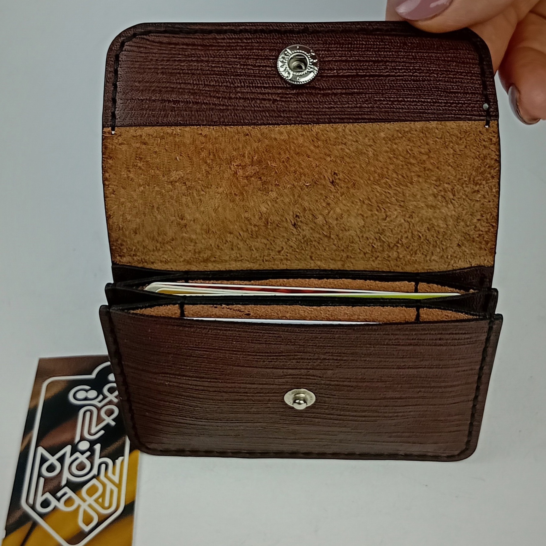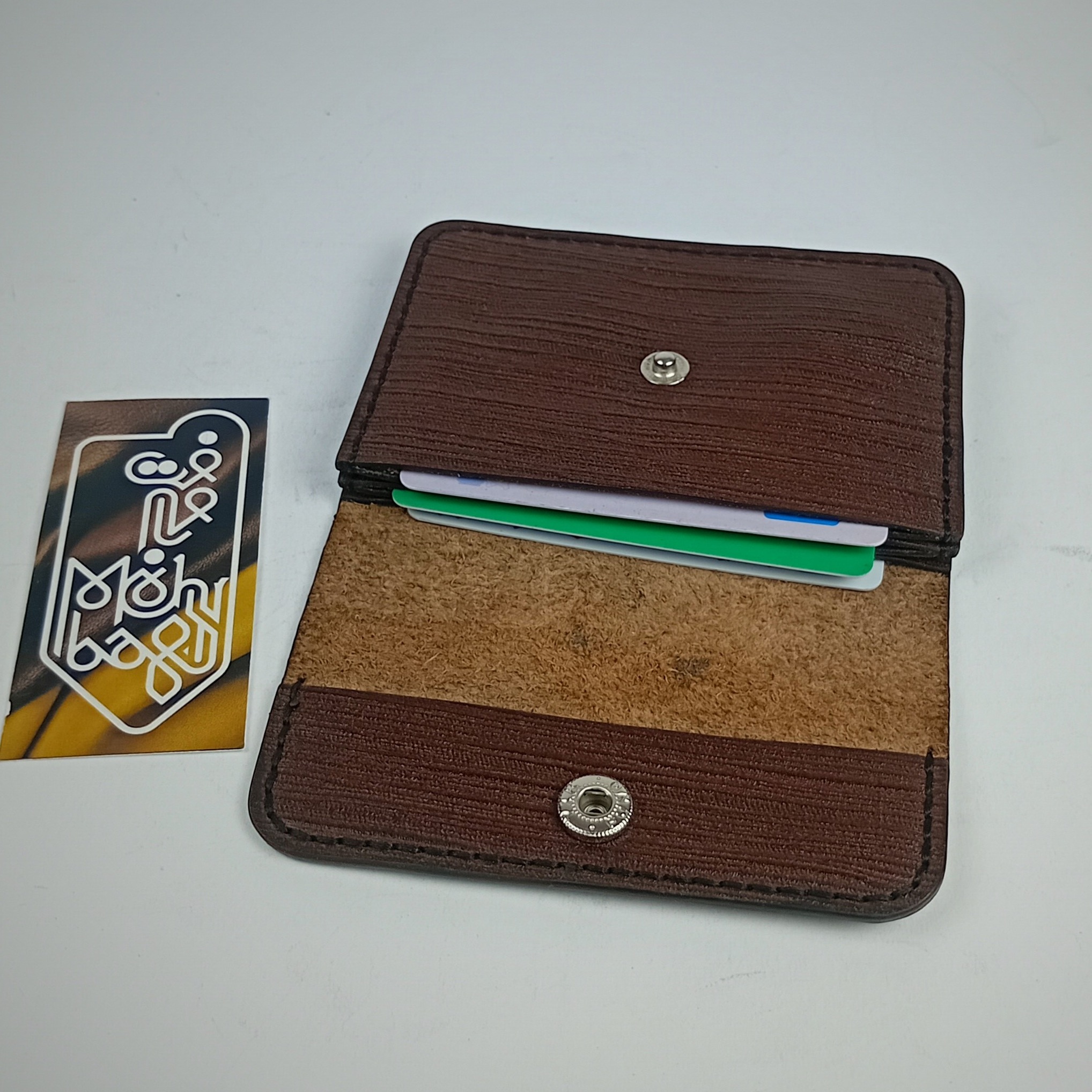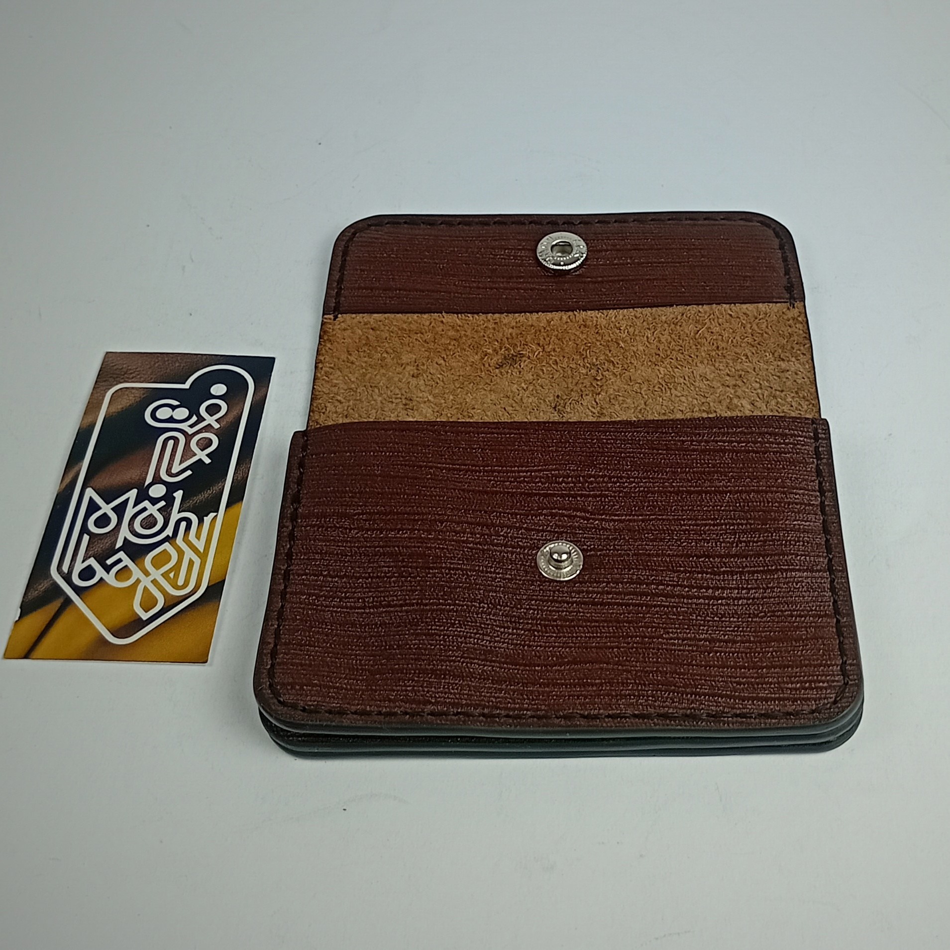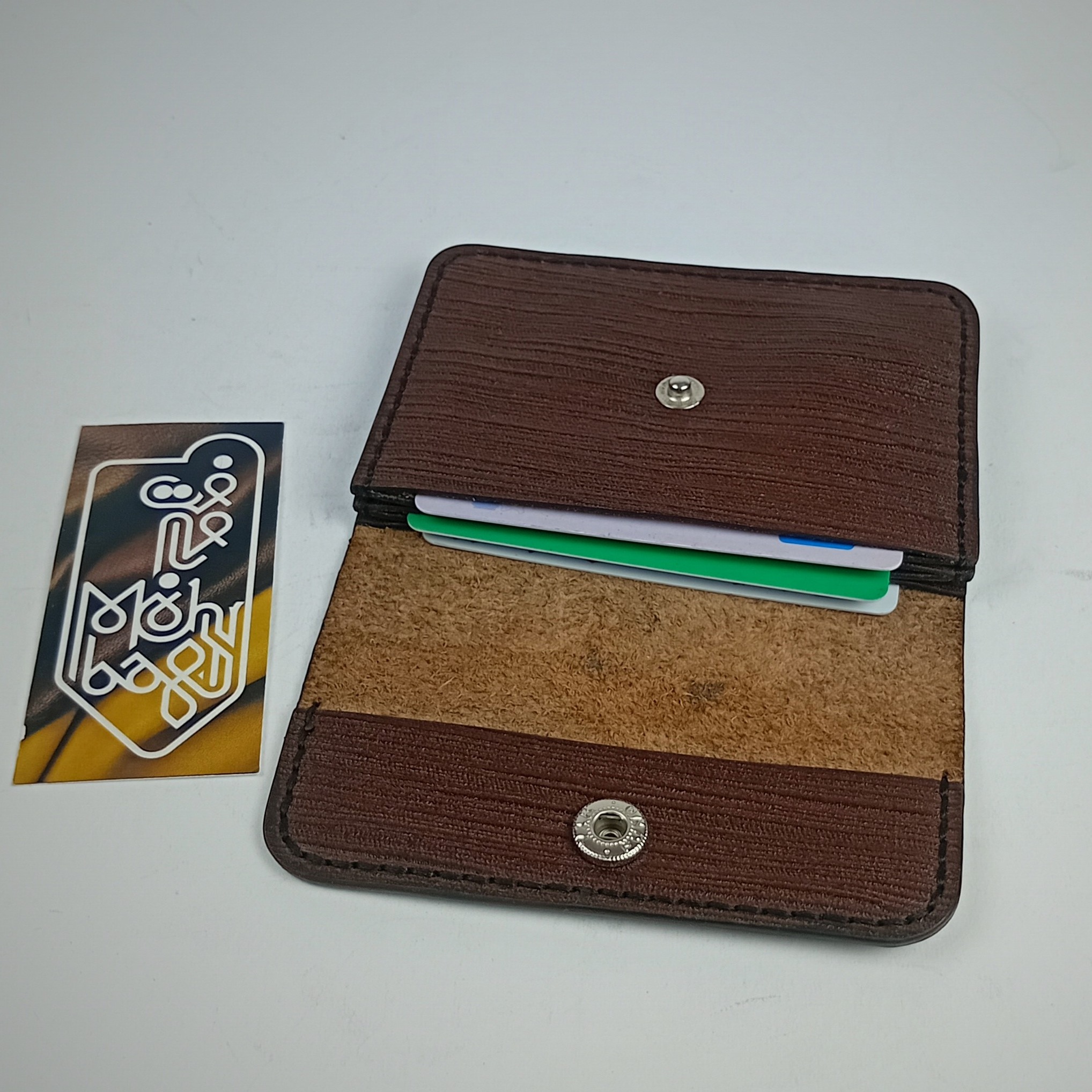 جاکارتی ، تهیه شده از چرم طبیعی گاوی طرح درختی ، با ظرفیت 10 الی 12 کارت بانکی در 3 قسمت، کاملا دست دوز ، دوخته شده با نخ موم زده ترک ، دارای رنگ لبه درجه یک ، بسیار سبک و شیک
