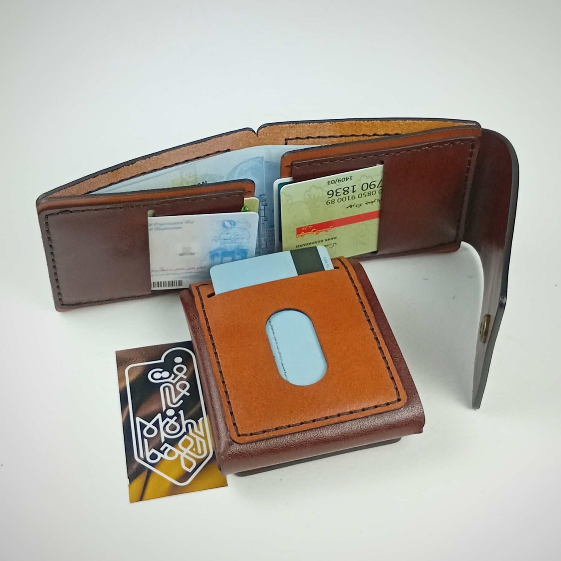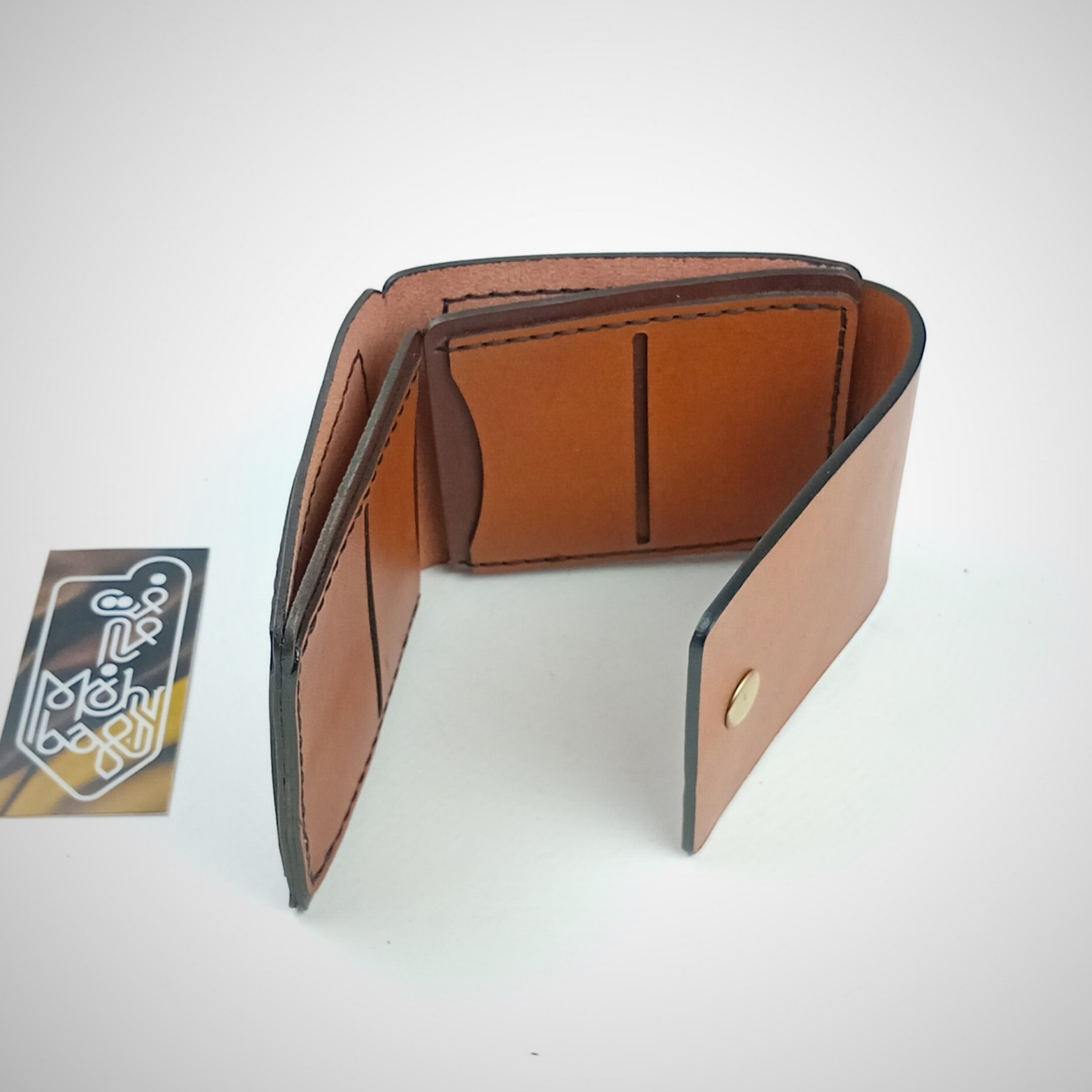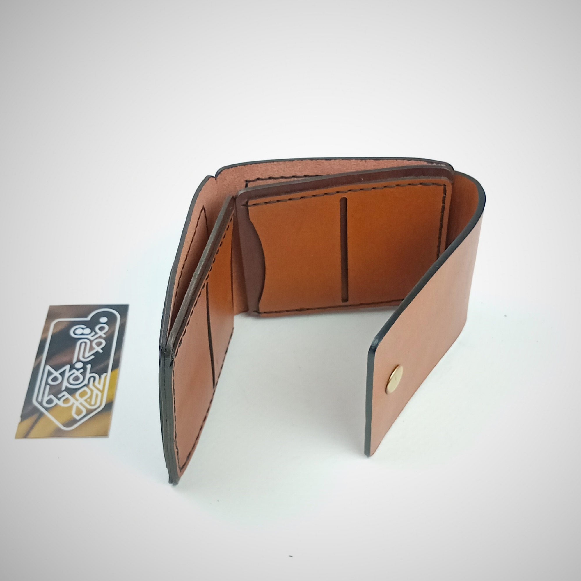 کیف پول جیبی، تهیه شده از چرم طبیعی گاوی ، کاملا دست دوز ، دوخته شده با نخ موم زده ترک ، با رنگ لبه درجه یک