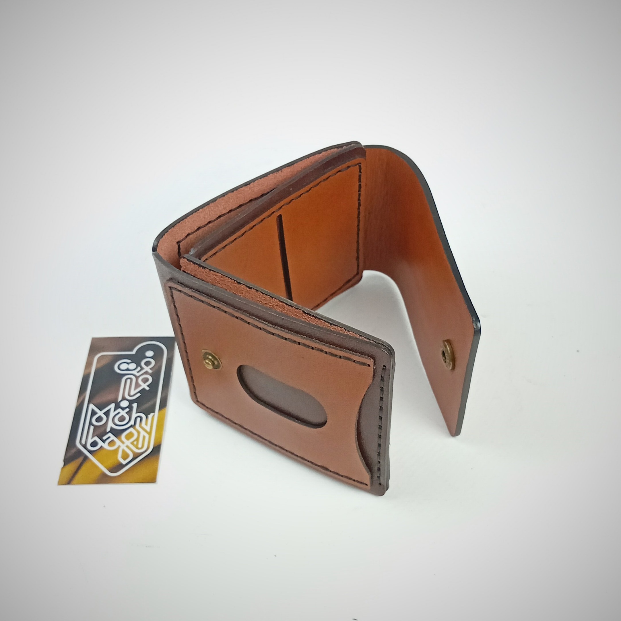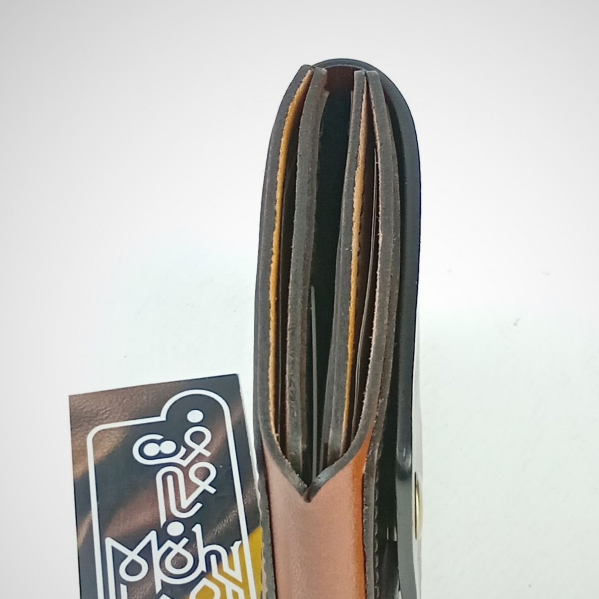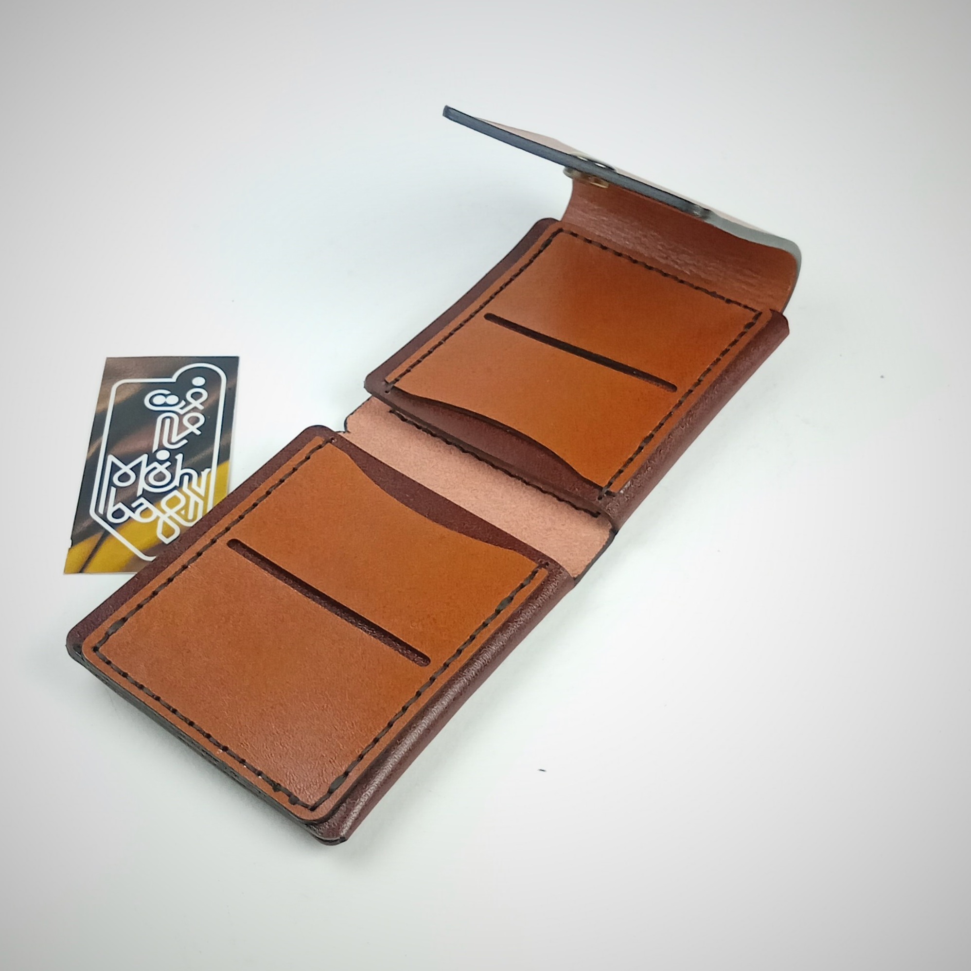 کیف پول جیبی، تهیه شده از چرم طبیعی گاوی ، کاملا دست دوز ، دوخته شده با نخ موم زده ترک ، با رنگ لبه درجه یک