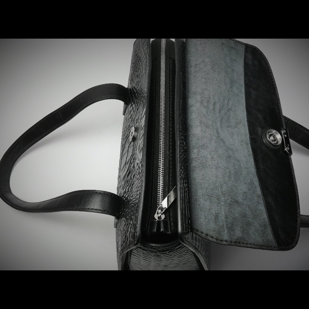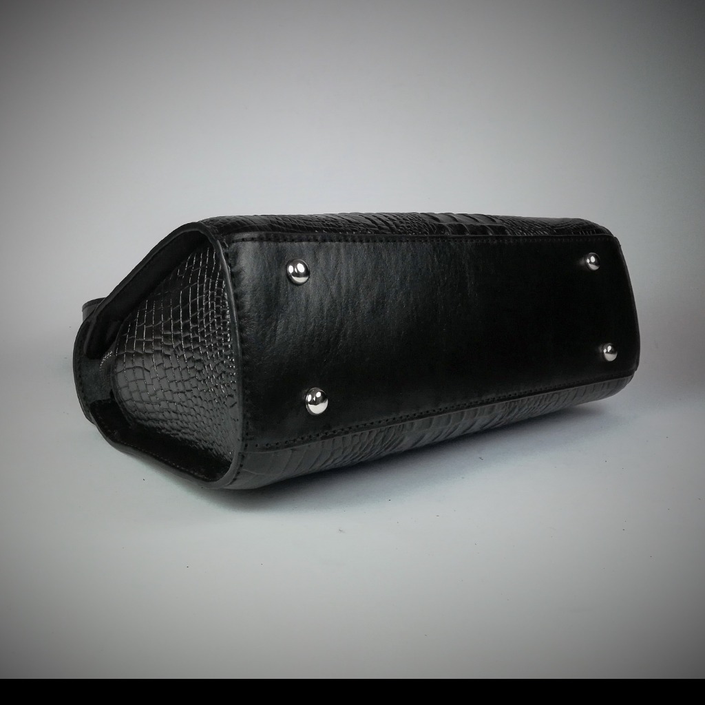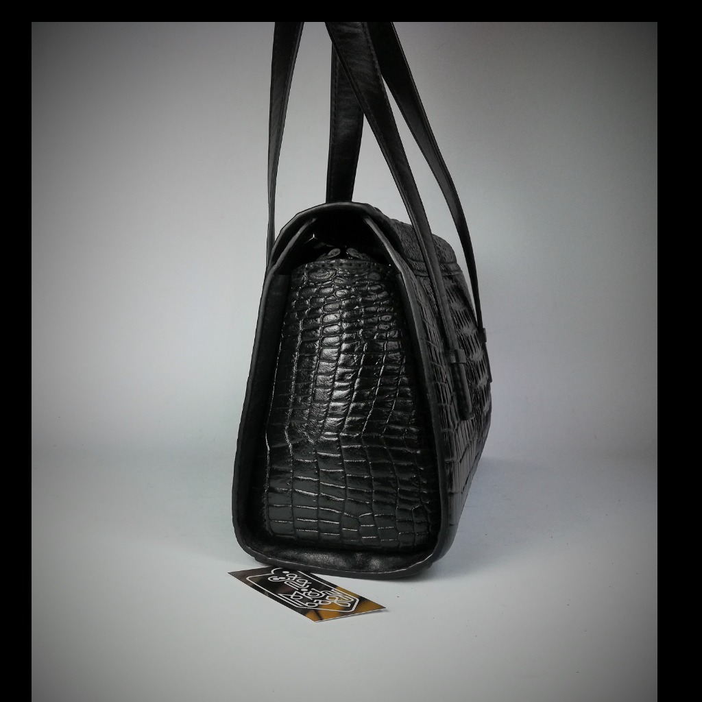 کیف مجلسی زنانه ، تهیه شده از چرم طبیعی گاوی طرح کروکدیلی ، دست دوز ، دوخته شده با نخ موم زده ترک ، با رنگ لبه درجه یک ، با بند دولایه دستی ، مناسب مجالس و میهمانی ها ، بسیار شیک