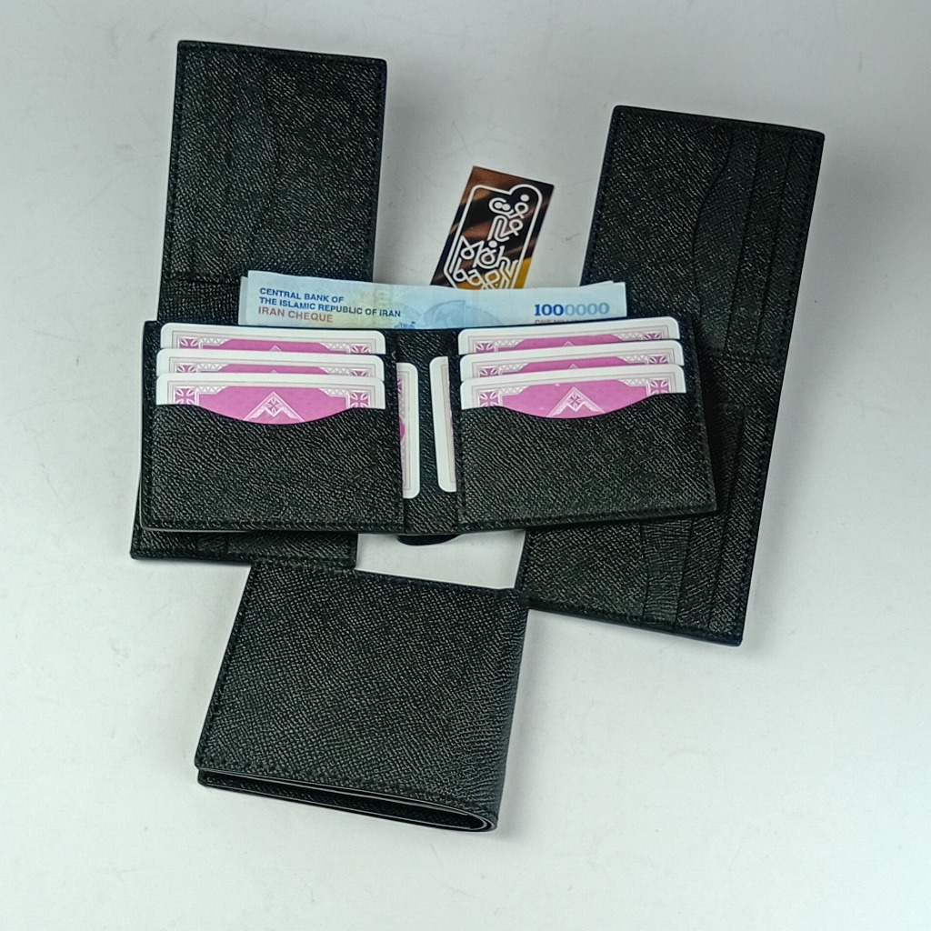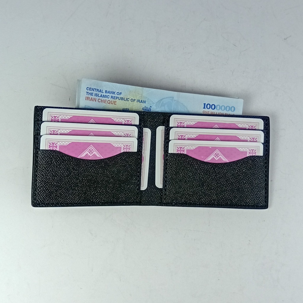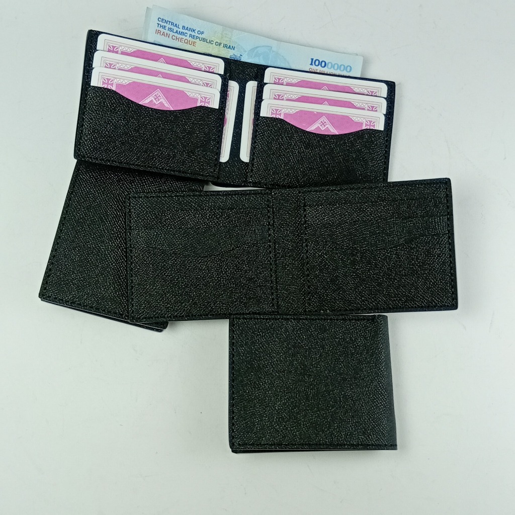 کیف پول جیبی مردانه ، تهیه شده از چرم گاوی ، دست دوز ، دوخته شده با نخ موم زده ، دارای رنگ لبه درجه یک