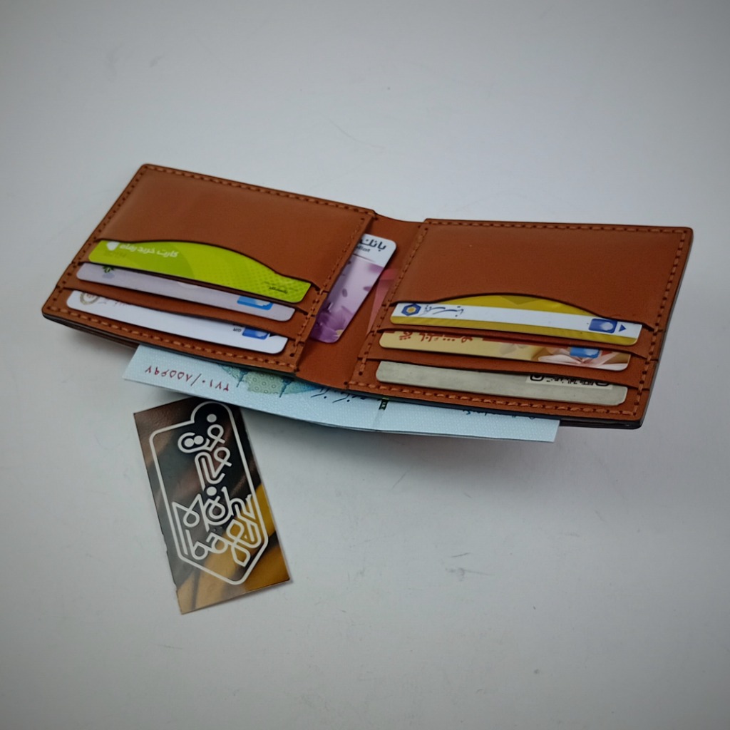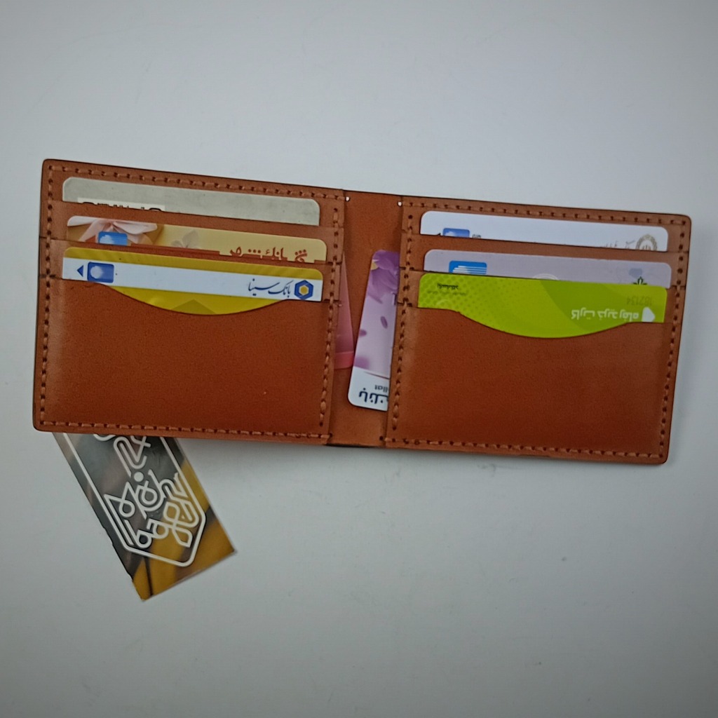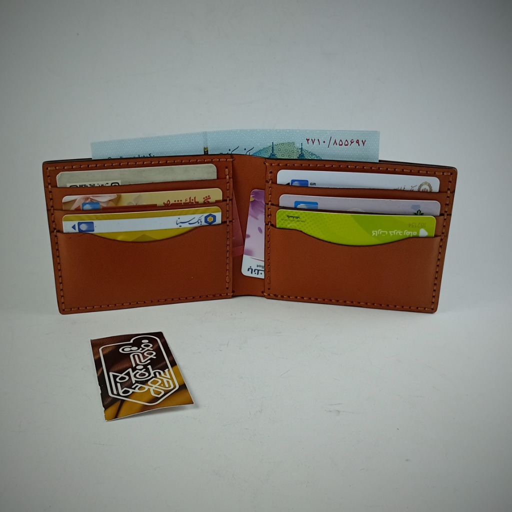 کیف پول جیبی مردانه ، تهیه شده از چرم طبیعی گاوی ، دست دوز ، دوخته شده با نخ موم زده ی ترک ، دارای رنگ لبه درجه یک ،