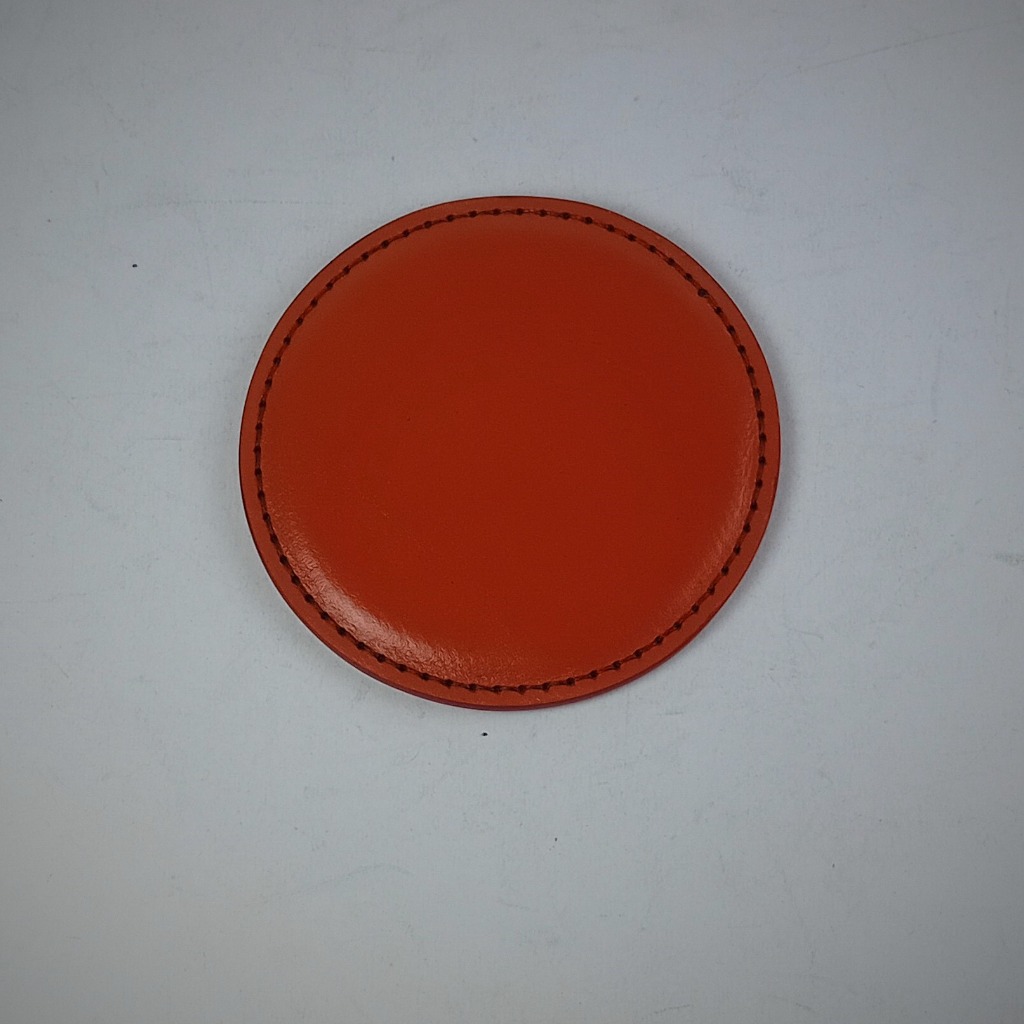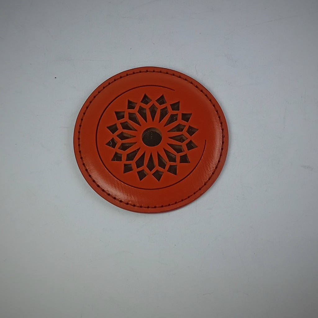 آینه چرمی طرح اسلیمی ، تهیه شده از چرم طبیعی گاوی ، دست دوز ، دارای رنگ لبه با مواد درجه یک
