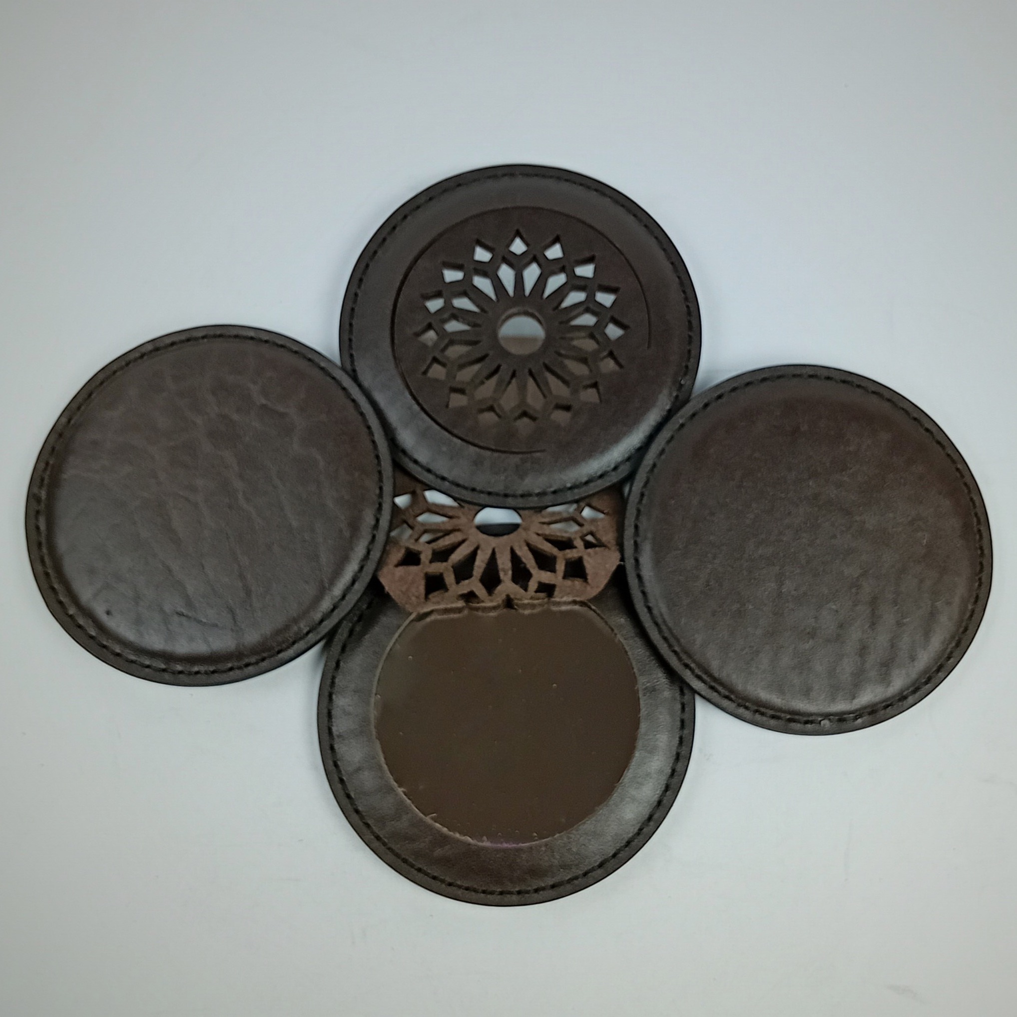 آینه طرح اسلیمی چرم طبیعی کد 259/4