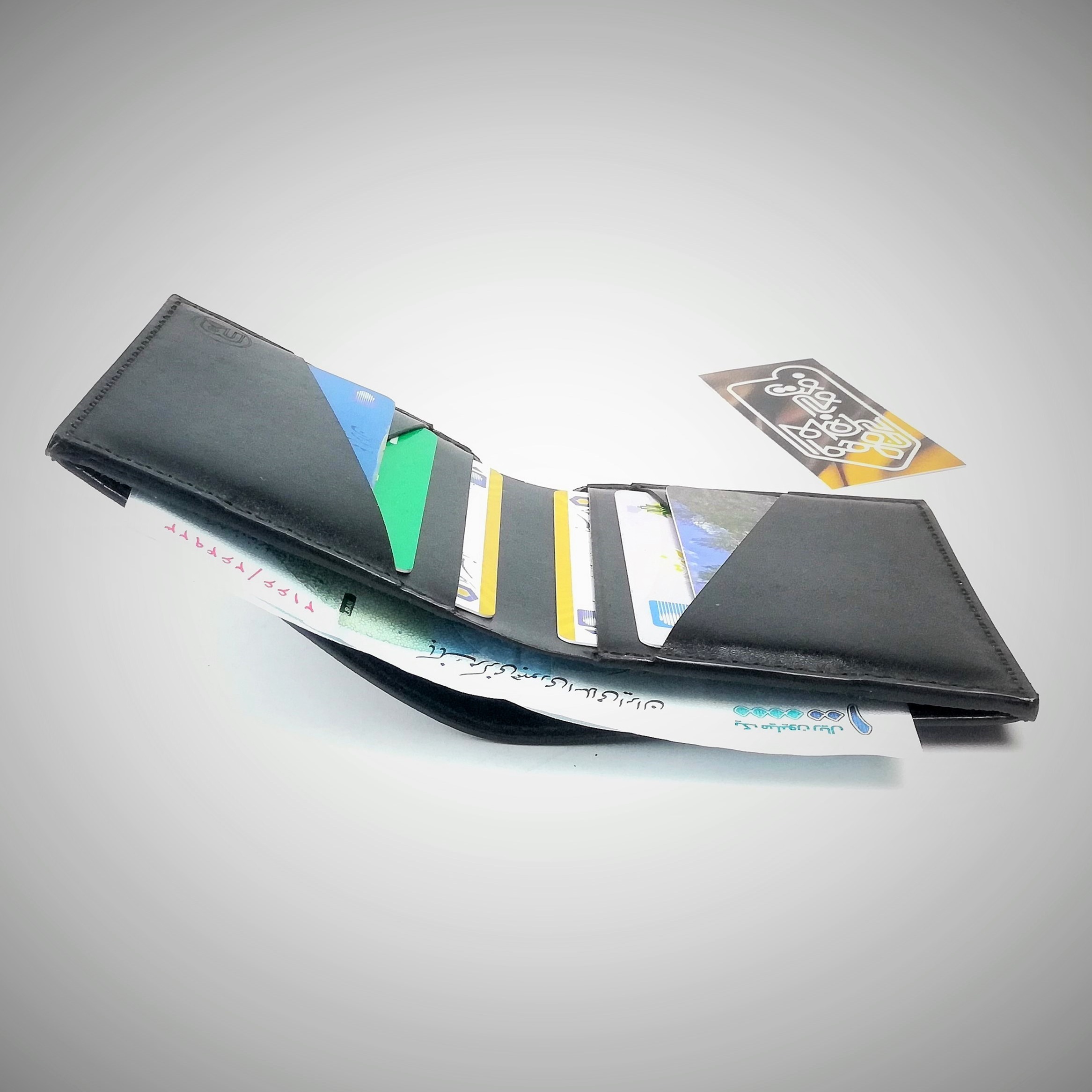 کیف پول جیبی مردانه ، تهیه شده از چرم وکیوم طبیعی گاوی ، دست دوز ، با رنگ لبه خارجی ، دوخته شده با نخ موم زده ترک