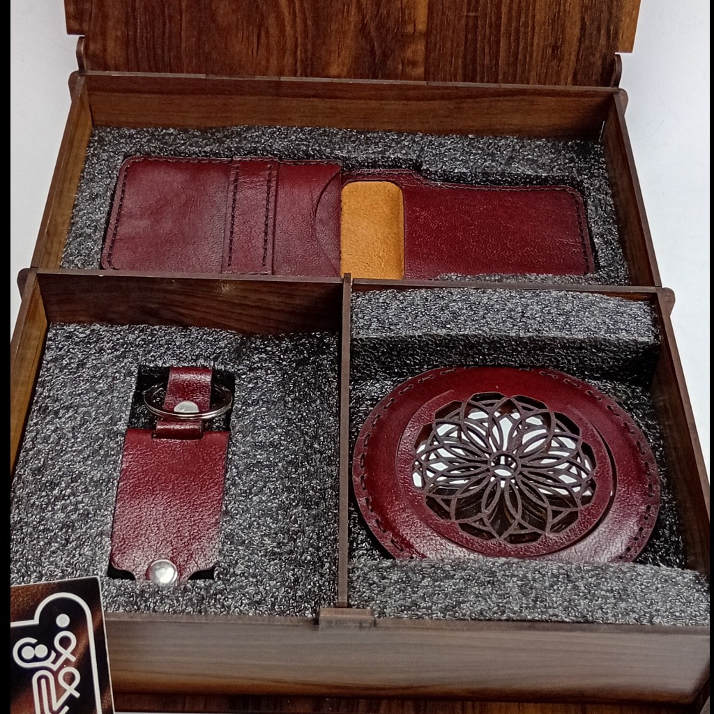 ست کادویی زنانه ، تهیه شده از چرم طبیعی شامل